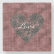 Burgundy Stripes Black Faux Lace Floral Heart Stone Coaster
