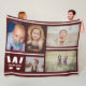 Burgundy Stripes Multiple Photos Custom Monogram Fleece Blanket
