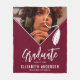 Graduation is a momentous occasion that deserves to be celebrated, our minimalist burgundy graduation blanket features a photo of the graduate in the shape of a grad cap with the tassel, along with grads name, the school or college they attended, and the class year.