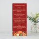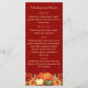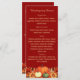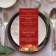 Burgundy coloured background decorated with orange fall flowers and pumpkins. Personalise and add your Thanksgiving menu on the front.