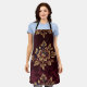 Burgundy Velvet Peony Gold Embroidery Floral Apron