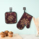 Burgundy Velvet Peony Gold Embroidery Floral Oven Mitt & Pot Holder Set