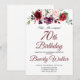 Burgundy Watercolor Floral 70th Surprise Birthday Invitation