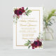 Burgundy Watercolor Floral Boho Gold Wedding Invitation