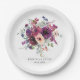 Burgundy Watercolor Wildflowers Boho Wedding Paper Plate