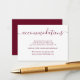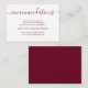 You can slip these elegant burgundy petite cards into your wedding invitations to let out of town guests know of any hotel arrangements, or group codes. Easily personalise this modern enclosure cards online. Matching items available. Custom requests welcome.