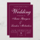 This beautiful wedding invitation features a burgundy/purple background accented with elegant white font. This invitation can be customised to fit your needs. You can also order one copy to make sure the design is right for you before ordering a large bundle.