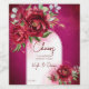 Burgundy wedding maroon flowers modern arch wedding personalised custom wine labels. Burgundy background, burgundy flowers, white arch.