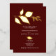 Modern yet elegant. This burgundy wedding rehearsal dinner invitation frames your celebration details with a border of gold foil leaves over a solid maroon background. Your event details are set in an simple sans serif and script type. The colours can be customised to suit your wedding theme. To see more simple wedding invitation suites like this visit Do Tell A Belle on Zazzle at www.zazzle.com/dotellabelle