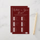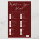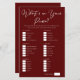 An elegant burgundy bridal shower game What's In Your Purse for an evening party. Personalise these trendy paper sheets with your own point options for your friends. A fun customisable bachelorette party game with a minimalist solid colour scheme.