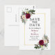 Burgundy White Floral Save The Date Gold Frame Postcard