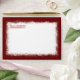 Burgundy and white 5x7 envelope conveniently has your company address and logo already printed. Budget company envelopes are easy to personalise with other sizes available. Pre-printed address, business envelopes are versatile for company holiday cards, collateral, or promotional materials. Decorative white snowflake border is a festive addition to your burgundy company holiday Christmas cards. While the solid background colour is completely changeable, this shade of red is versatile for burgundy, dark red, or maroon company logo colours.