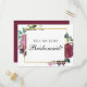 Burgundy Will you be my bridesmaid. Maroon flowers Invitation Postcard