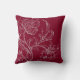 Modern throw pillow features an elegant stylised line drawing of a stemmed flowers in shades of burgundy and wine with grey. The scale and position of the flowers allows the floral print to be an off-set focal point of the design in a complimentary colour palette of burgundy and grey. A simple floral print, with the burgundy and grey artistic floral design on both sides.