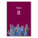 Each card features a prominent and easy-to-read table number on the front, adorned with the romantic bluebonnet and dusty miller motif. The rich burgundy background creates a beautiful, cohesive look for every table. The back of the card can be customised with a special table name, adding a personal and heartfelt touch to your decor or add the date.