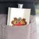The product is a good size and came exactly as it was pictured. The lid is not attached to the flask, which could be dangerous on drunken nights... The print came out surprisingly well and looks very sharp. Would definitely recommend.