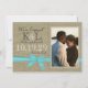 The look of burlap with a pretty blue bow and photo. Change text, fonts and colours of text as needed.