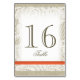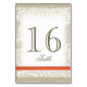 The look of burlap and lace, table number to compliment our "Ocean Romance" invitations in coral.