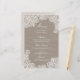 An elegant and vintage inspired burlap and lace wedding menu design by Shelby Allison.