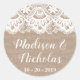 Use our burlap and lace envelope seal stickers to decorate your wedding envelopes. These classic sticker circles could also be used for many other purposes. The wording is completely customisable - if you need to change the font, font colour, size or the placement of the text boxes just click on the "Click to customise further" button to change those things. Be sure to check out our large selection of coordinating items by browsing the Rustic Burlap and Lace Wedding collection!