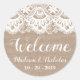 Burlap and Lace Wedding Welcome Stickers, Rustic Classic Round Sticker
