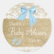 Burlap and Lace with Blue Bow Baby Shower-Favour Classic Round Sticker