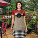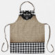 A pretty, timeless and classic burlap and black and white buffalo check design with coordinating colour on the ties and neck strap.