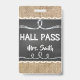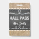 Burlap & Chalk Teacher Hall Pass for Classroom ID Badge
