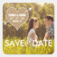 Rustic Wedding Save the Date Sticker. Designed by Elke Clarke© Bold, simple modern white text on a burlap heart pierced by a white arrow. Fully customisable if you select "customise it". Replace the sample photo shown with your own engagement photo.