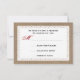 A casual wedding r.s.v.p. featuring an illustration of red gingham over a lace inspired design. Background on front and back is burlap and lace inspired.