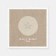 Paper napkins featuring an illustration of a sand dollar over a burlap inspired background. Personalise the text. Look for matching invitations and other coordinating items at Jill's Paperie.