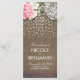 Rustic country wedding programs with burlap, lace, pink flowers and gold confetti dots