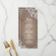 Elegant white vintage lace and sparkle silver glitter on rustic burlap background. great wedding menus for rustic wedding, barn wedding and country wedding.