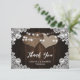 Burlap Lace Wood Rustic Purple Blue Floral Wedding Thank You Card