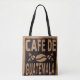 ALL OVER PRINT FAUX BURLAP COFFEE BAG TOTE. DESIGN IS ON BOTH SIDES. FUN GIFT FOR ANY COFFEE LOVER!