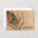 A rustic burlap and peacock feather RSVP response card. Easily personalise with your event details. Designs are flat printed graphics -- NOT ACTUAL BURLAP OR FEATHER.