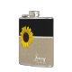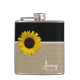 Burlap Print and Sunflower Hip Flask