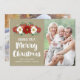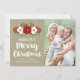 Merry Christmas customisable photo card in rustic country burlap pattern with vintage red and white flowers. Add your custom text to this card to create a unique Christmas photo greeting this holiday season for friends and family.