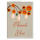 Burlap Rustic Orange Mason Jars Thank You Card
