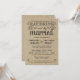 Eat, Drink, and be Married -- Vintage style rustic country burlap wedding invitations -- Swirly, curly scrolls and old-fashion typography on natural wheat-grain beige sackcloth background. Add the bride and groom names and wedding info in this easy to use template. Elegant but fun and whimsical, retro chalkboard style calligraphy can be modified for your formal or semi-formal wedding theme. Casual modern style is perfect for trendy contemporary weddings with a fun touch of sophisticated charm for traditional couples. Please contact us for help with customisation if you need additional room for your wedding details. Other sizes and styles available, along with coordinating postage, bridal accessories, shower favours, and luxury wedding essentials for diy brides on a budget. NOTE: Shown on 4.5 x 6.25 petite size invitation cards.