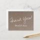Burlap thank you postcard for country chic wedding. Vintage texture design with name of bride and groom.