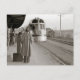 The Burlington Railroad's Zephyr streamline train at a station. East Dubuque, Illinois. 1940.