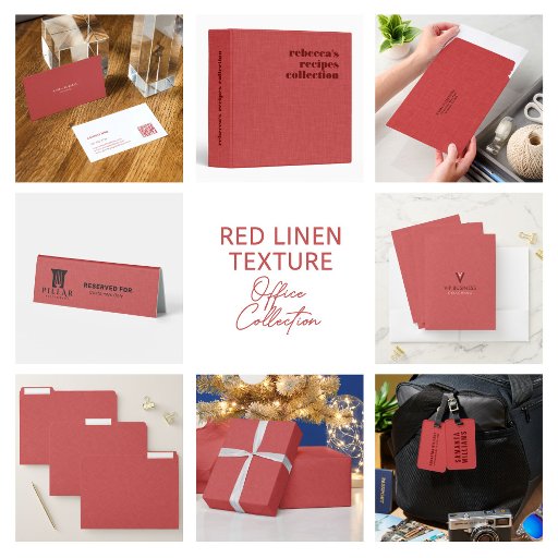 Burned-red tone linen texture image with customizable, simple, personalizable, dark red typography.
