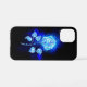 Blooming, abstract rose from blue flame on black background. Fire rose.