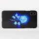 Blooming, abstract rose from blue flame on black background. Fire rose.