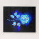 Blooming, abstract rose from blue flame on black background. Fire rose.