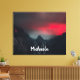 Landscape photograph of an unreal sunset taken at lake Lago di Fusine, Italy. Red colour is a bit exaggerated but standing there in real life it really felt like this. In a short moment the sun broke through the fog and just as fast disappeared. With a personalizable monogram in the mountains.