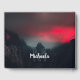 Landscape photograph of an unreal sunset taken at lake Lago di Fusine, Italy. Red colour is a bit exaggerated but standing there in real life it really felt like this. In a short moment the sun broke through the fog and just as fast disappeared. With a personalizable monogram in the mountains.