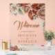 Elegant terracotta theme wedding welcome sign featuring beautiful flowers with modern typography.