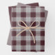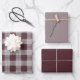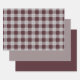 This set of wrapping paper sheets features a burnt burgundy gingham style plaid pattern with coordinating sheets in solid shades.